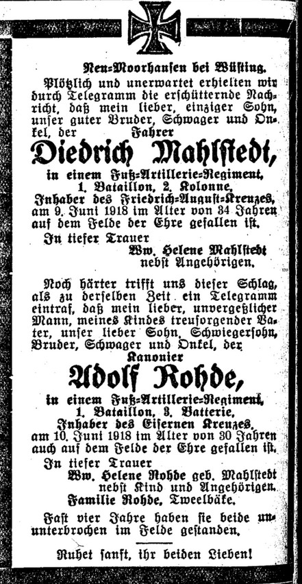 Quelle: Nachrichten für Stadt und Land vom 18. Juni 1918